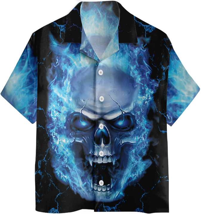 Blue Neon Skull Flame Hawaiian Shirt, 3D Blue Fire Skull Shirt - Hyperfavor