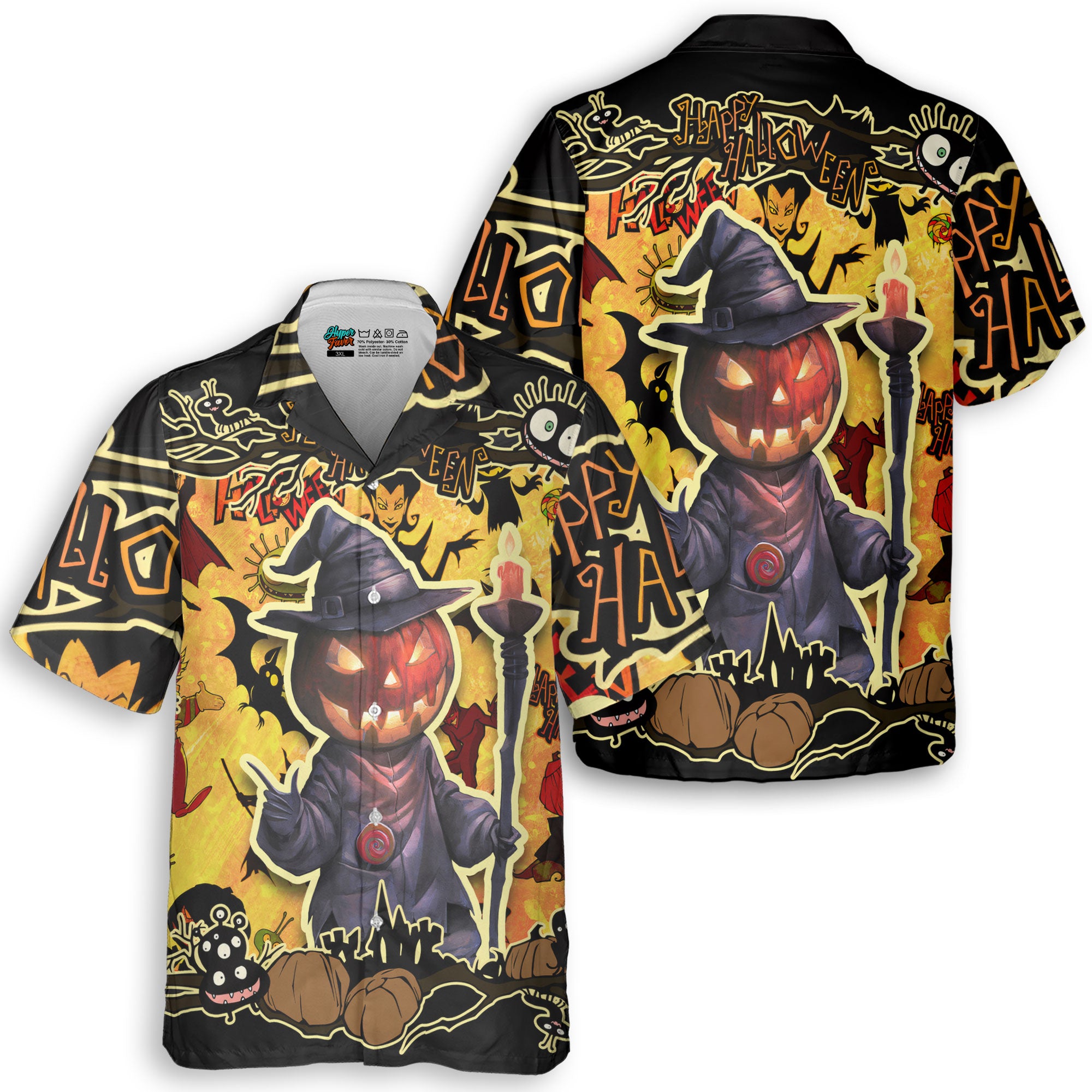 Cartoon Halloween Illustration Pumpkin Wizard Hawaiian Shirt - HYPERFAVOR