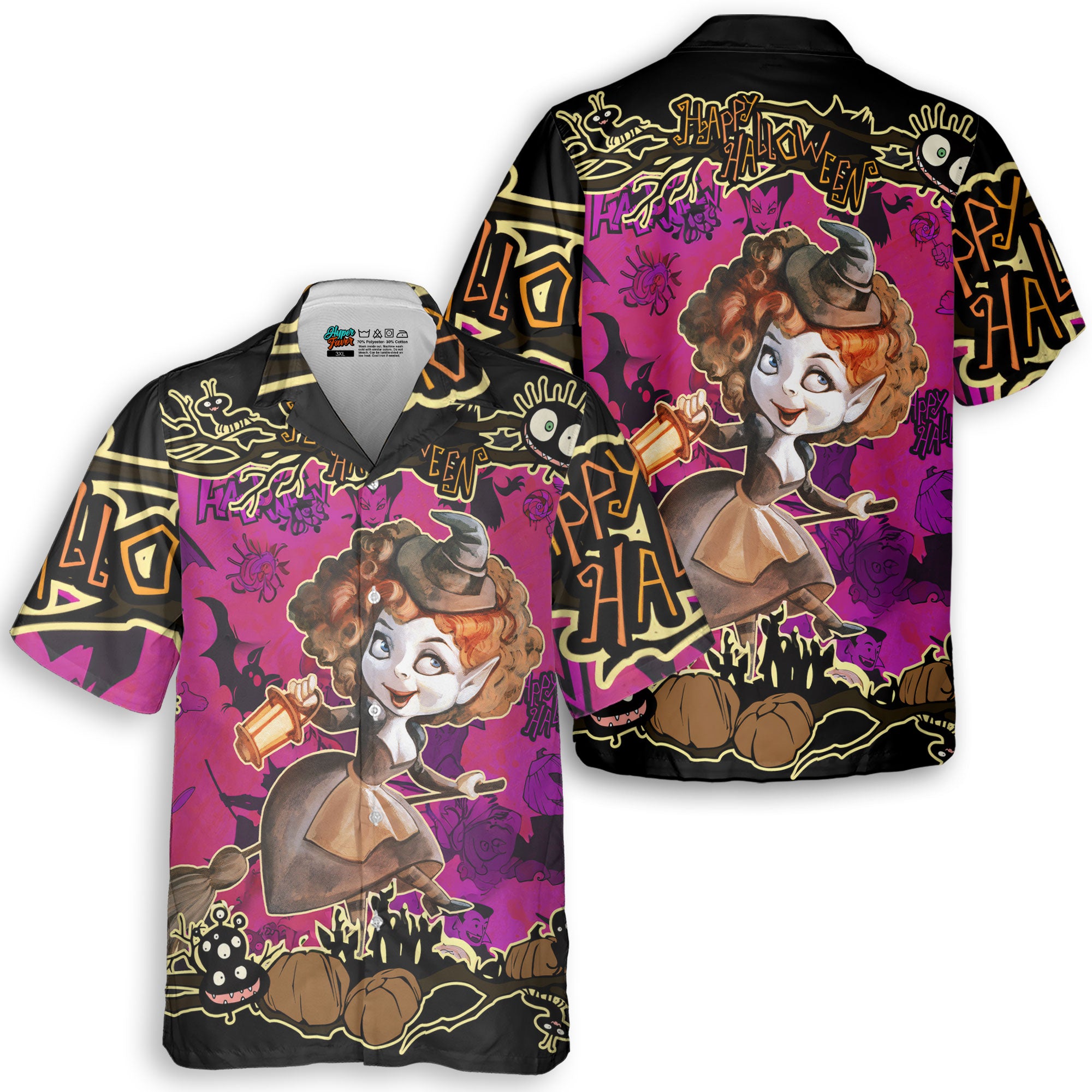 Cartoon Halloween Illustration Witch Purple Hawaiian Shirt - HYPERFAVOR
