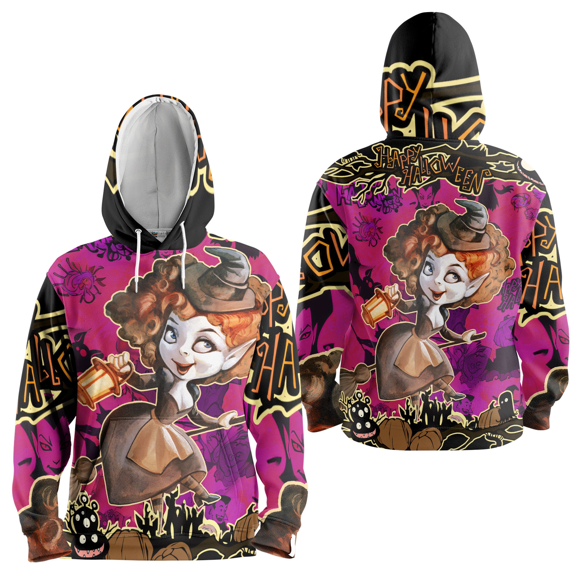 Cartoon Halloween Illustration Witch Purple Hoodie - HYPERFAVOR