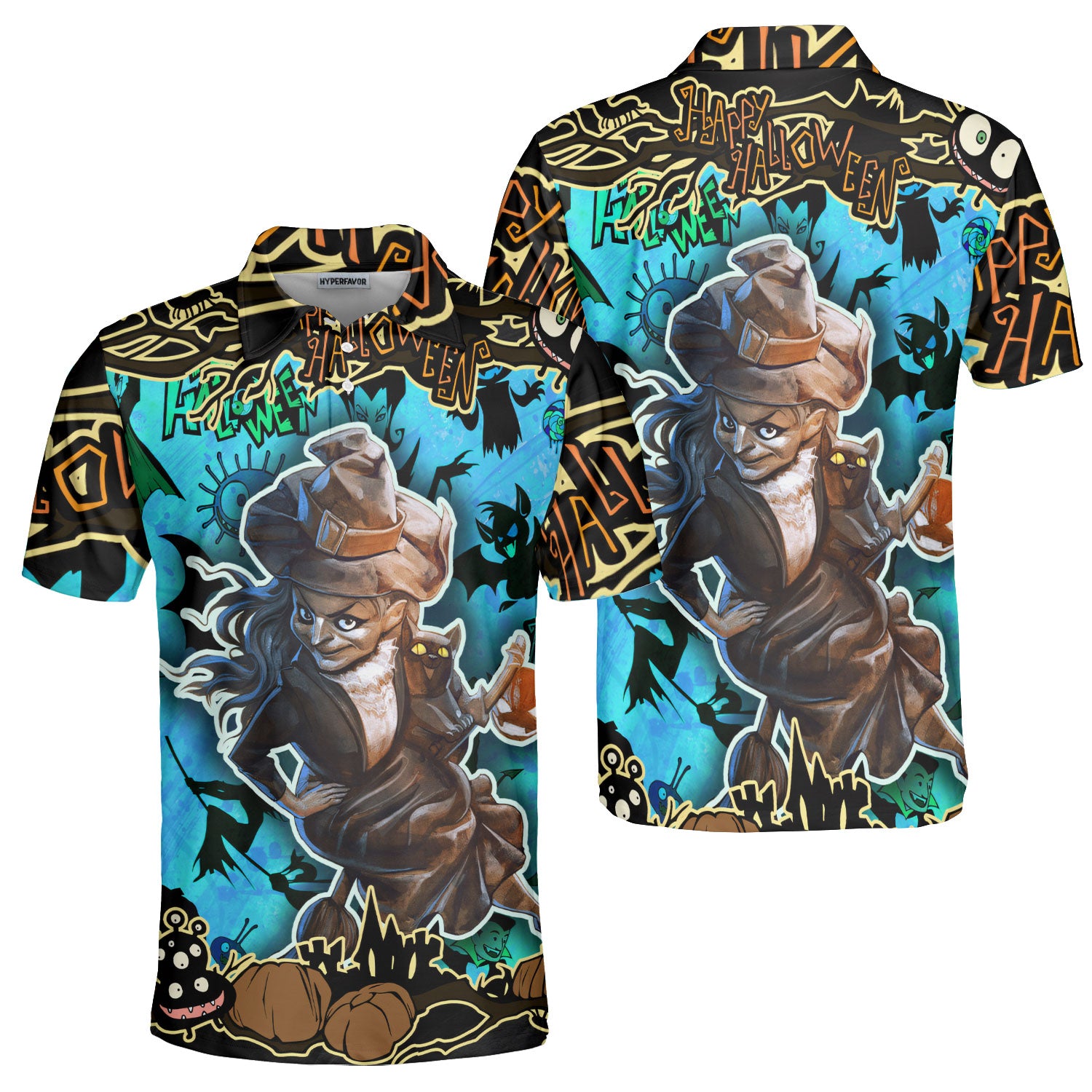 Cartoon Illustration Witch Halloween Polo Shirt - HYPERFAVOR