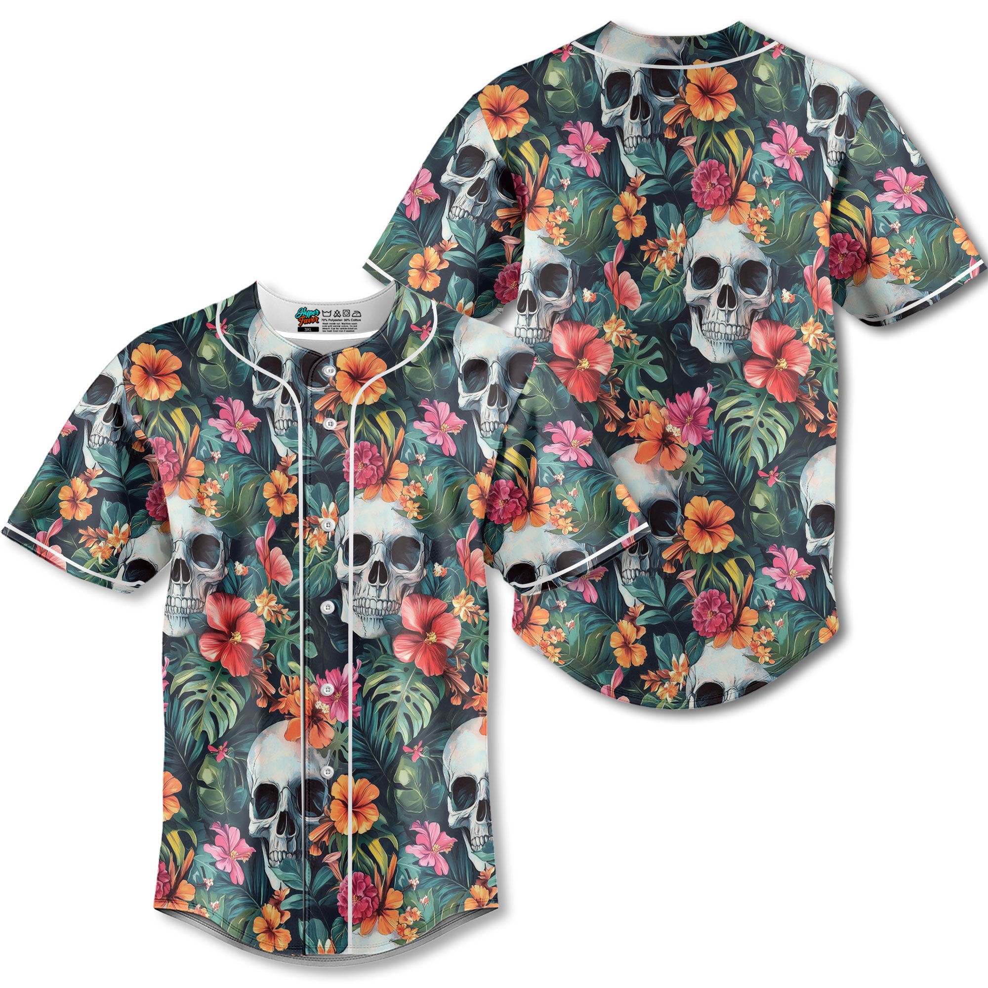 Colorful Tropical Flower Skull Pattern Baseball Jersey - HYPERFAVOR