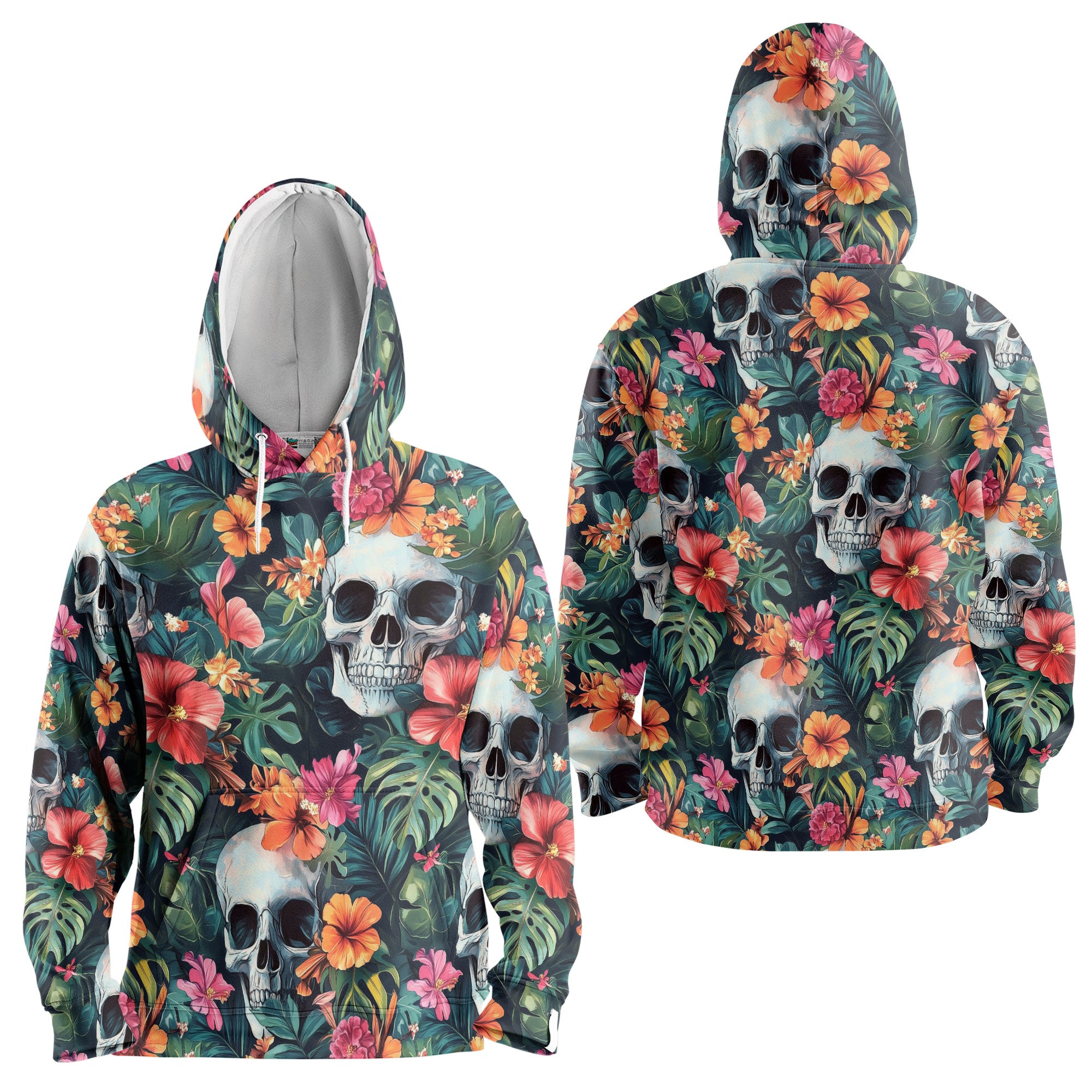Colorful Tropical Flower Skull Pattern Hoodie - HYPERFAVOR