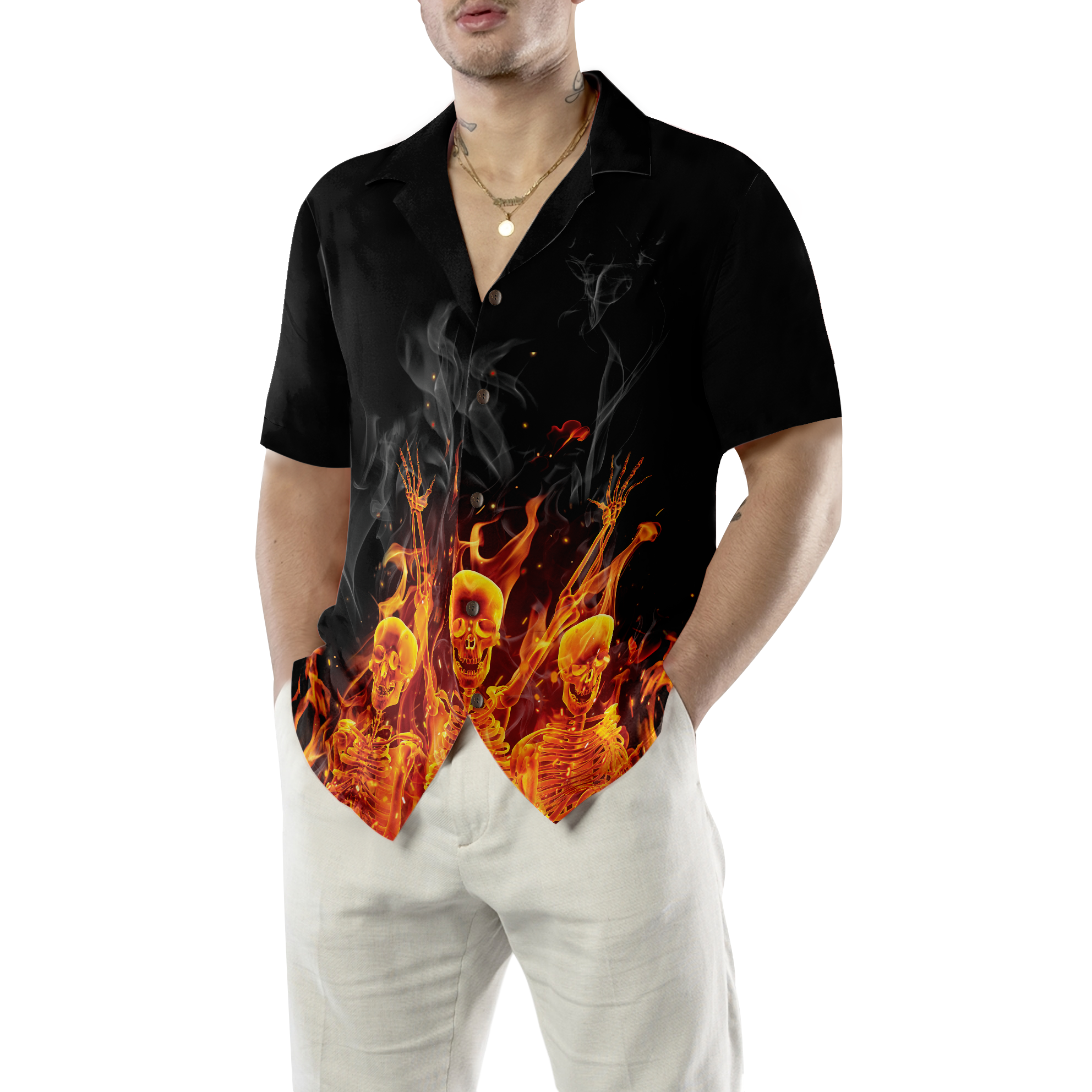 Fire Skeletons Night Party Hawaiian Shirt - Hyperfavor