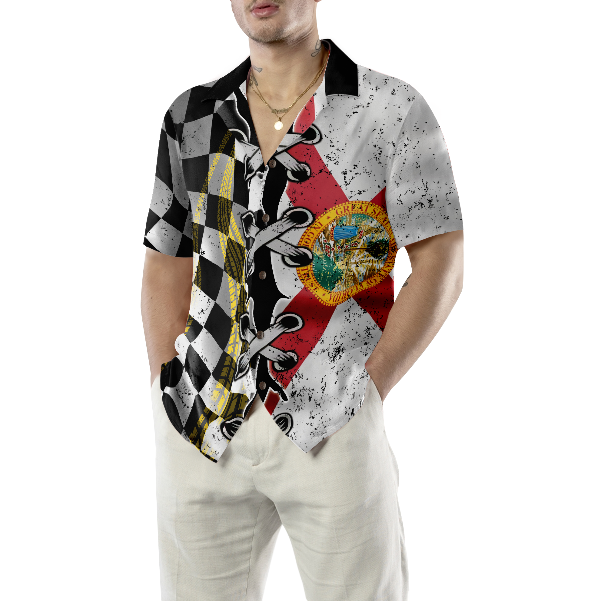 Florida Racing Flag Hawaiian Shirt - Hyperfavor