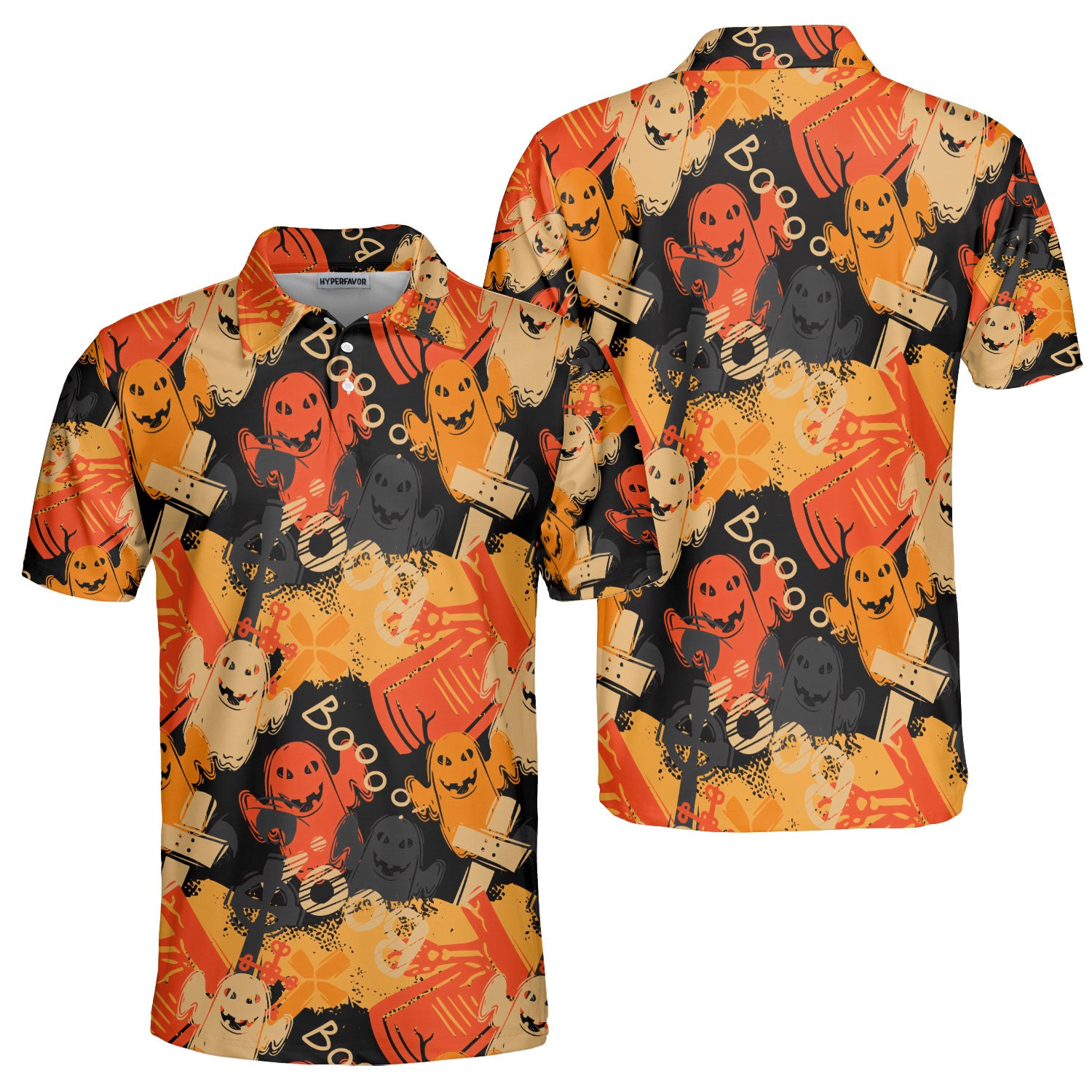 Funny Ghost Boo Halloween Abstract Seamless Pattern Polo Shirt - HYPERFAVOR