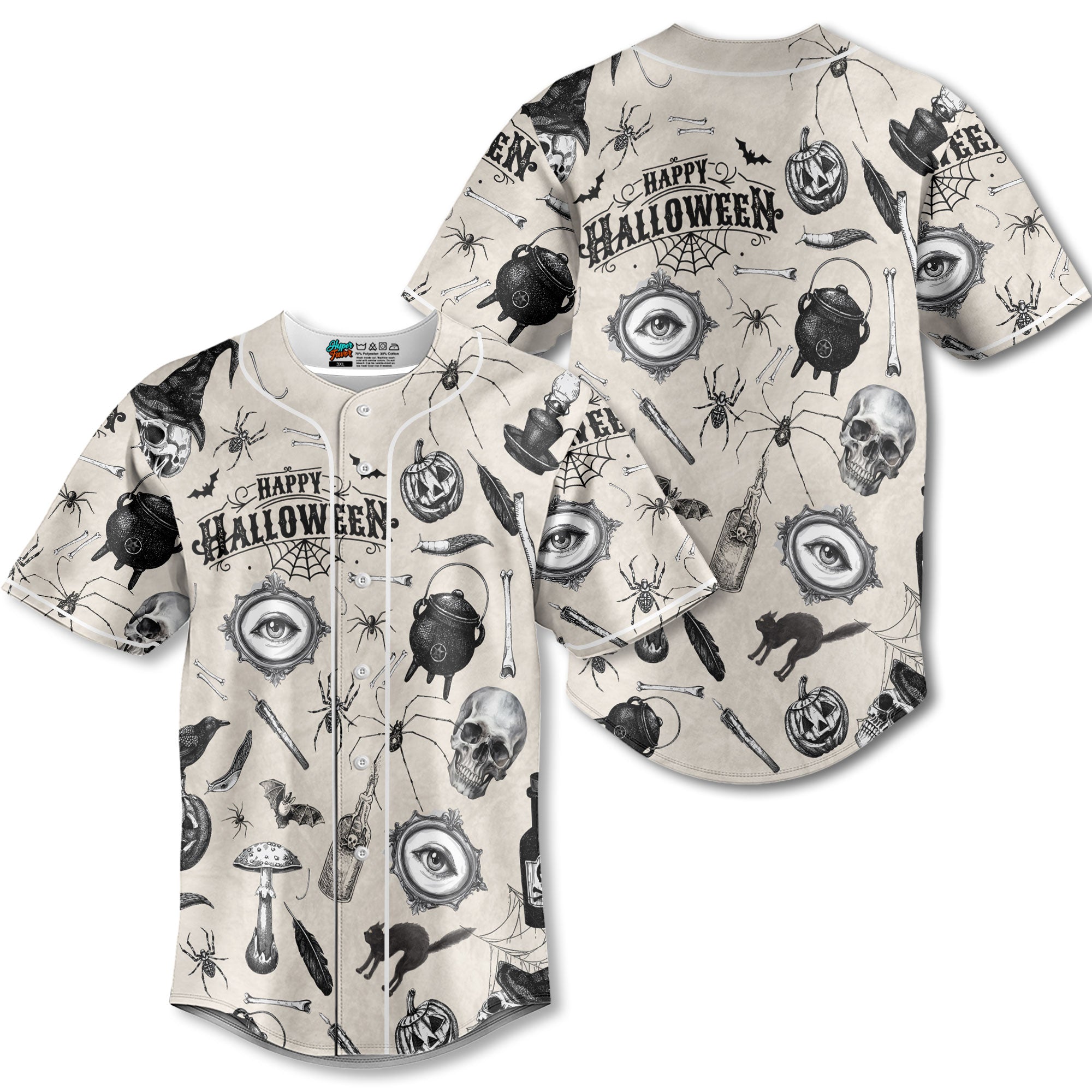 Funny Halloween Vintage Pattern Baseball Jersey - HYPERFAVOR