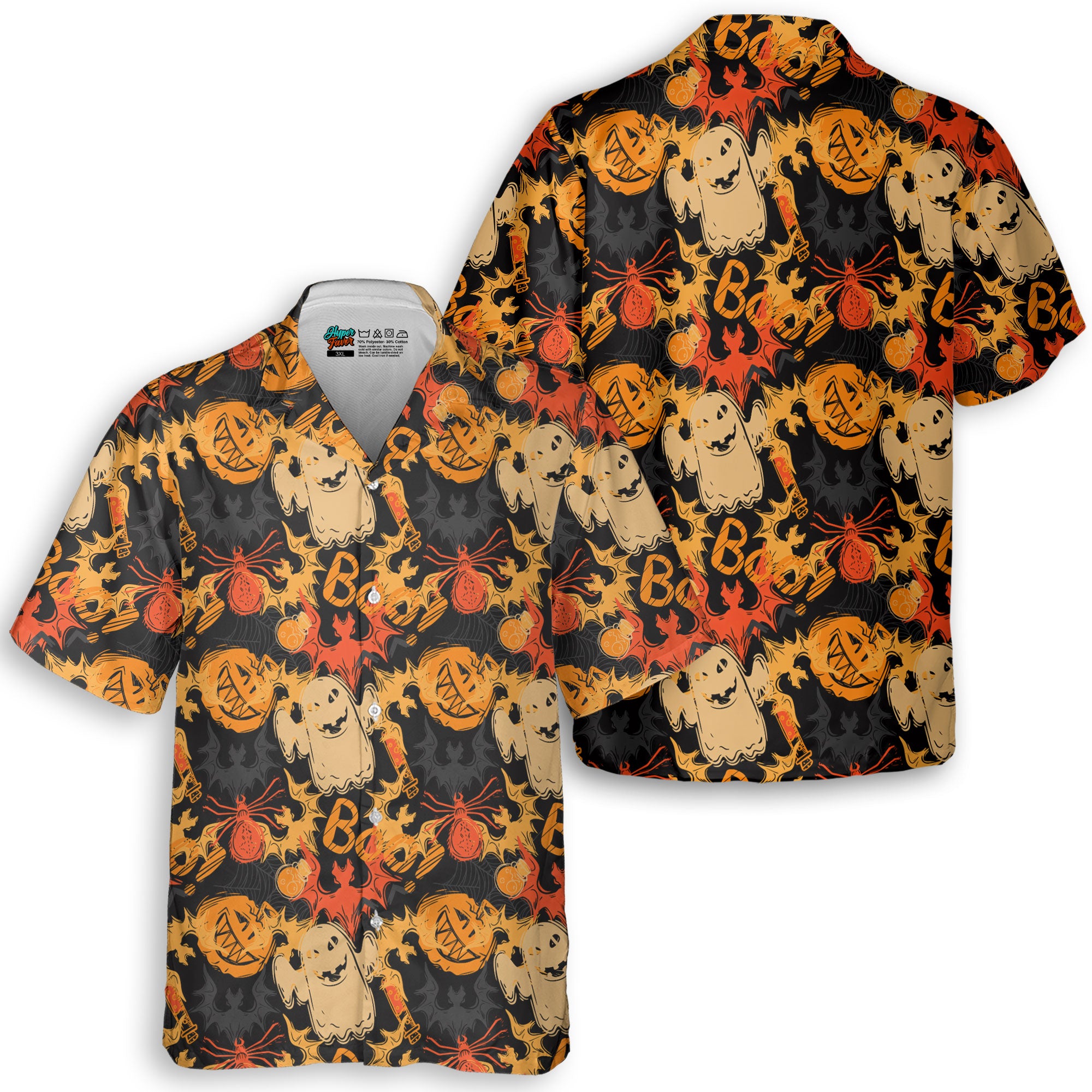 Funny Pumpkins Ghost Boo Halloween Abstract Seamless Pattern Hawaiian Shirt - HYPERFAVOR