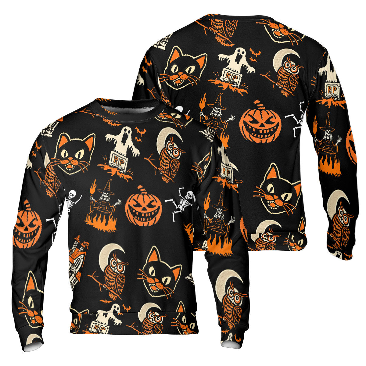 Funny Pumpkins Ghost Scary Halloween Pattern Sweatshirt - HYPERFAVOR