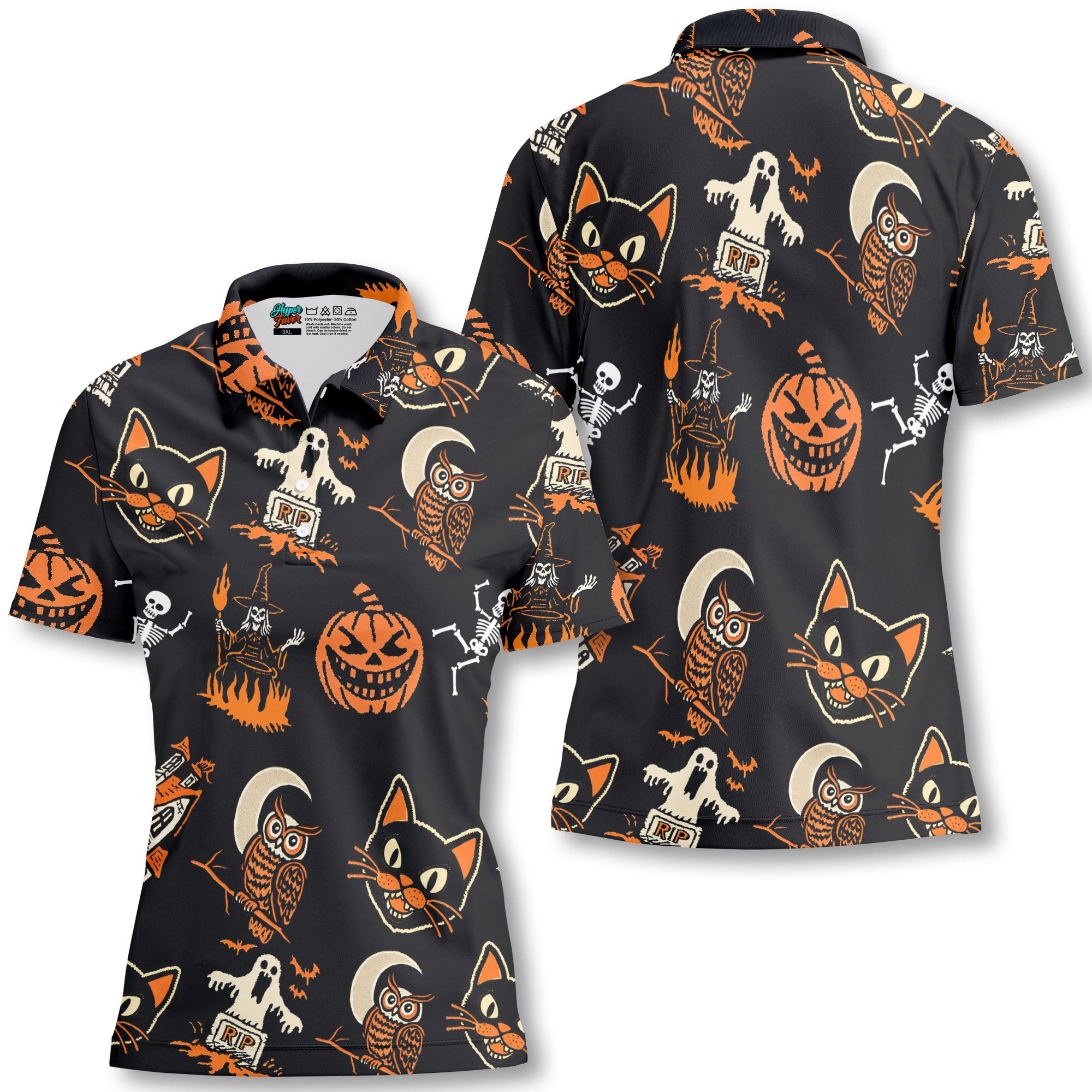 Funny Pumpkins Ghost Scary Halloween Pattern Woman Polo Shirt - HYPERFAVOR
