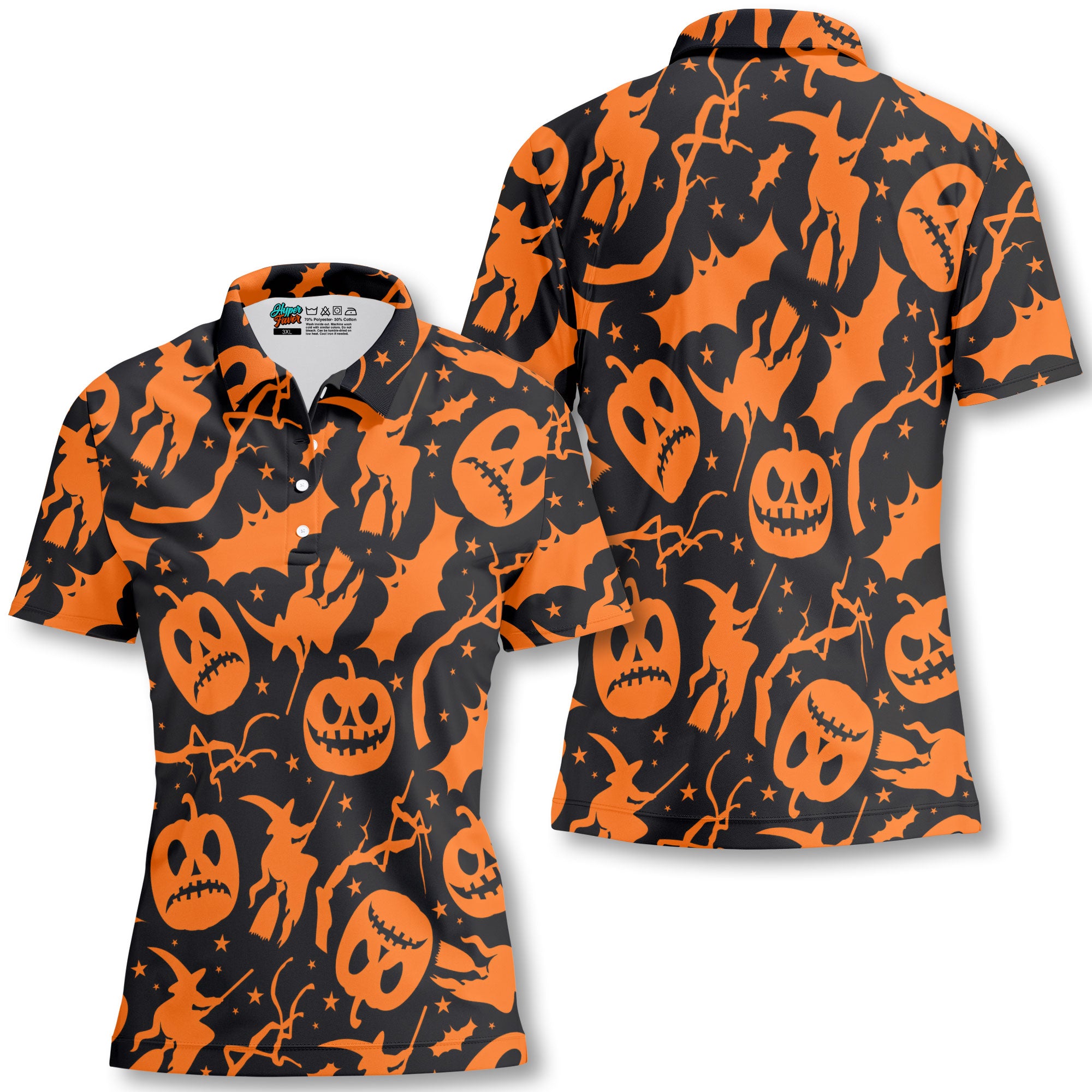 Funny Pumpkins & Witches Halloween Pattern Woman Polo Shirt - HYPERFAVOR