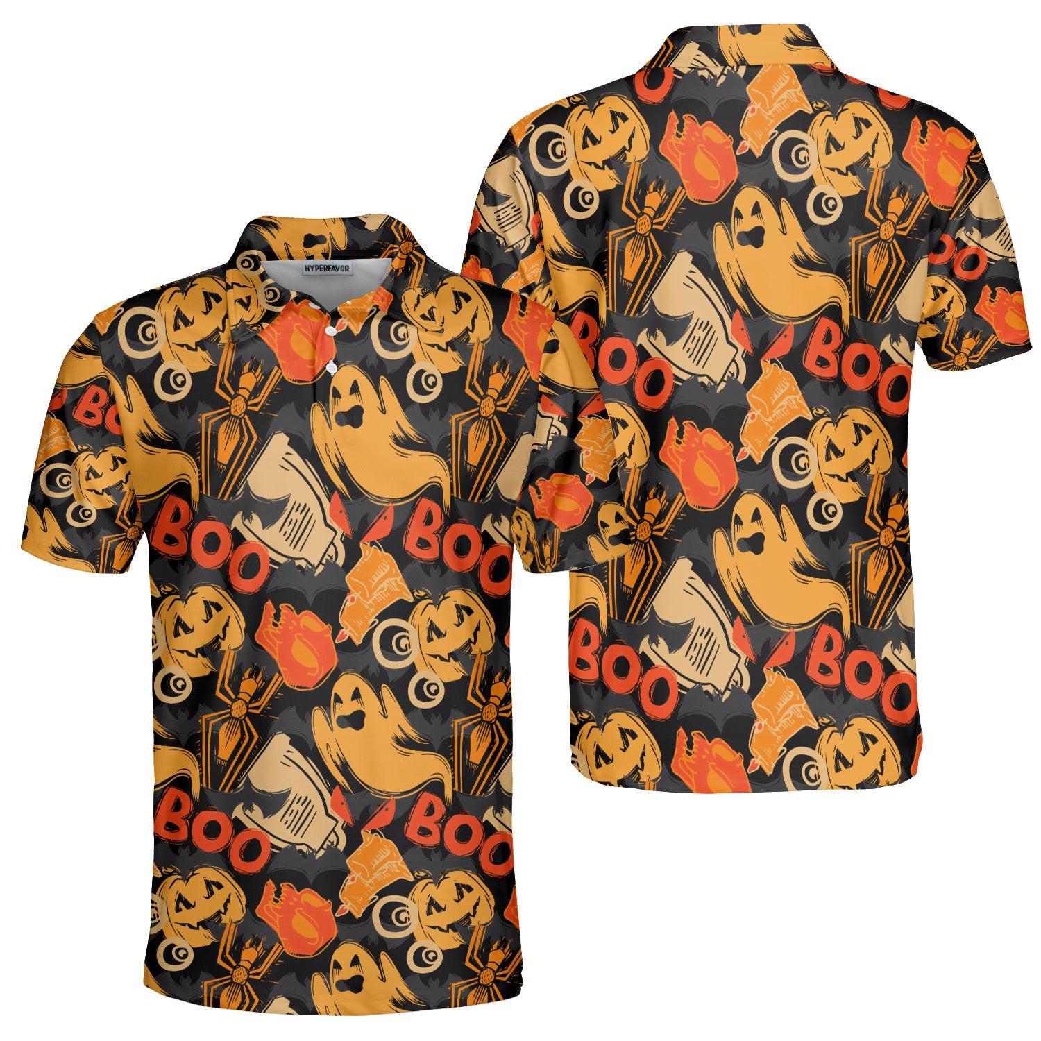 Ghost Pumpkins Halloween Abstract Seamless Pattern Polo Shirt - HYPERFAVOR