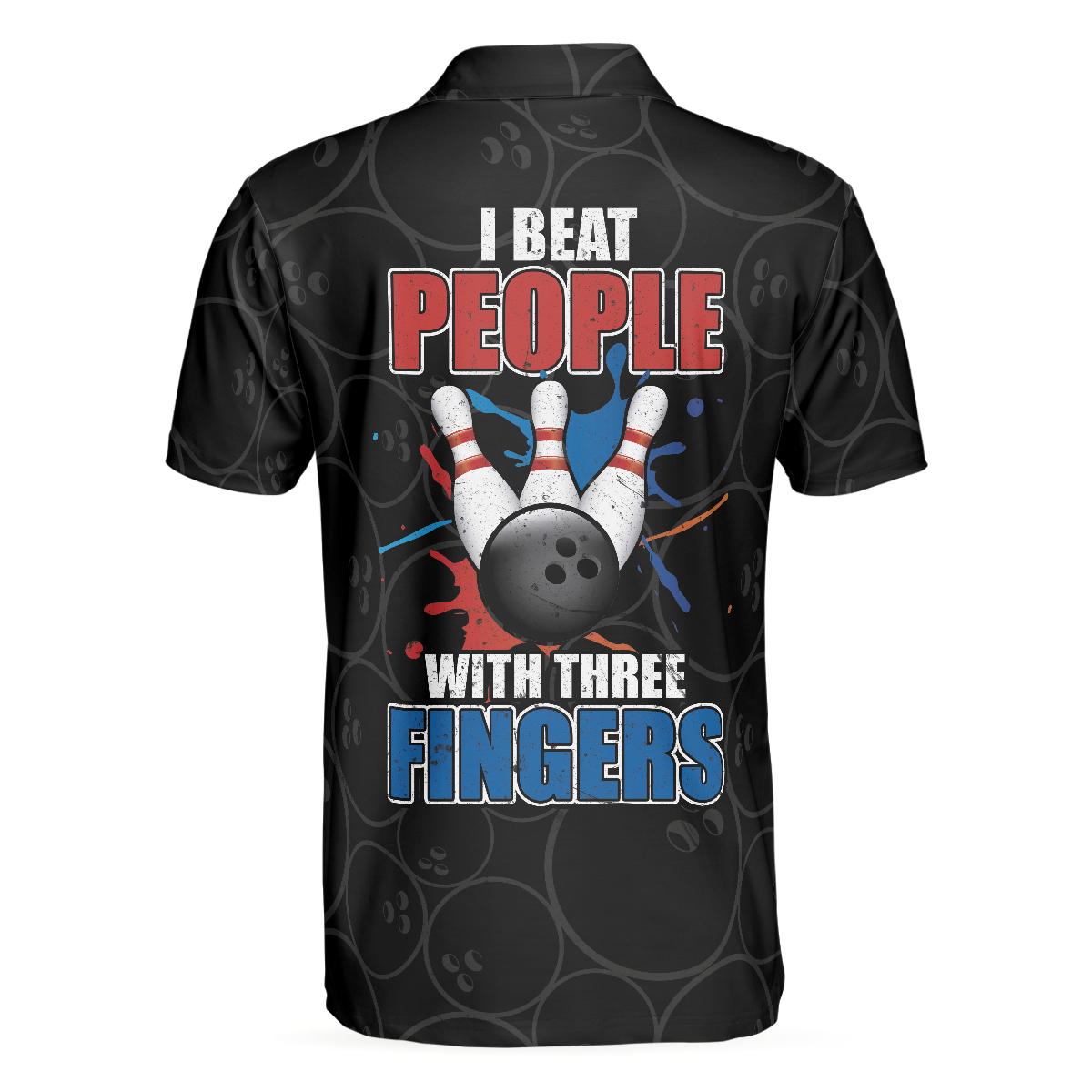 I Beat People With Three Fingers Bowling Polo Shirt, Black Polo Style Bowling Shirt For Men, Bowling Gift Idea - Hyperfavor