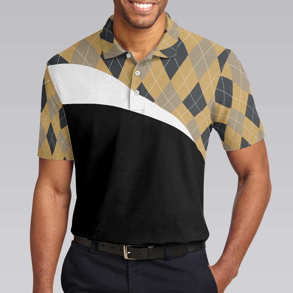 Just A Man Who Loves Golf & Beer Polo Shirt, Argyle Pattern Polo Style Golfing Shirt For Men, Best Drinking Golf Shirt - Hyperfavor