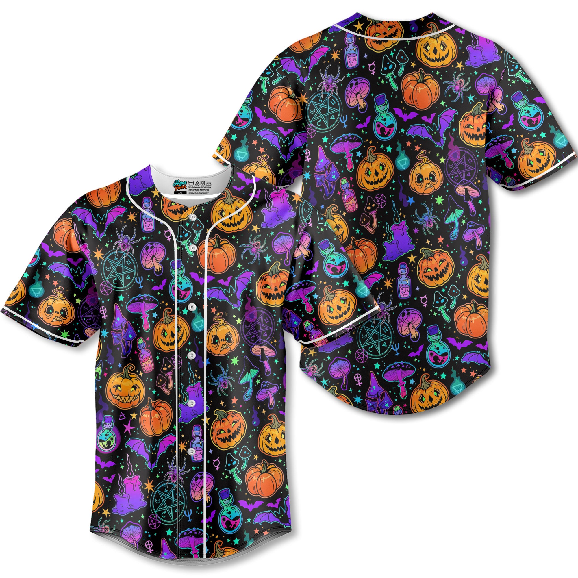 Magical Pumpkins Halloween Seamless Pattern Baseball Jersey - HYPERFAVOR