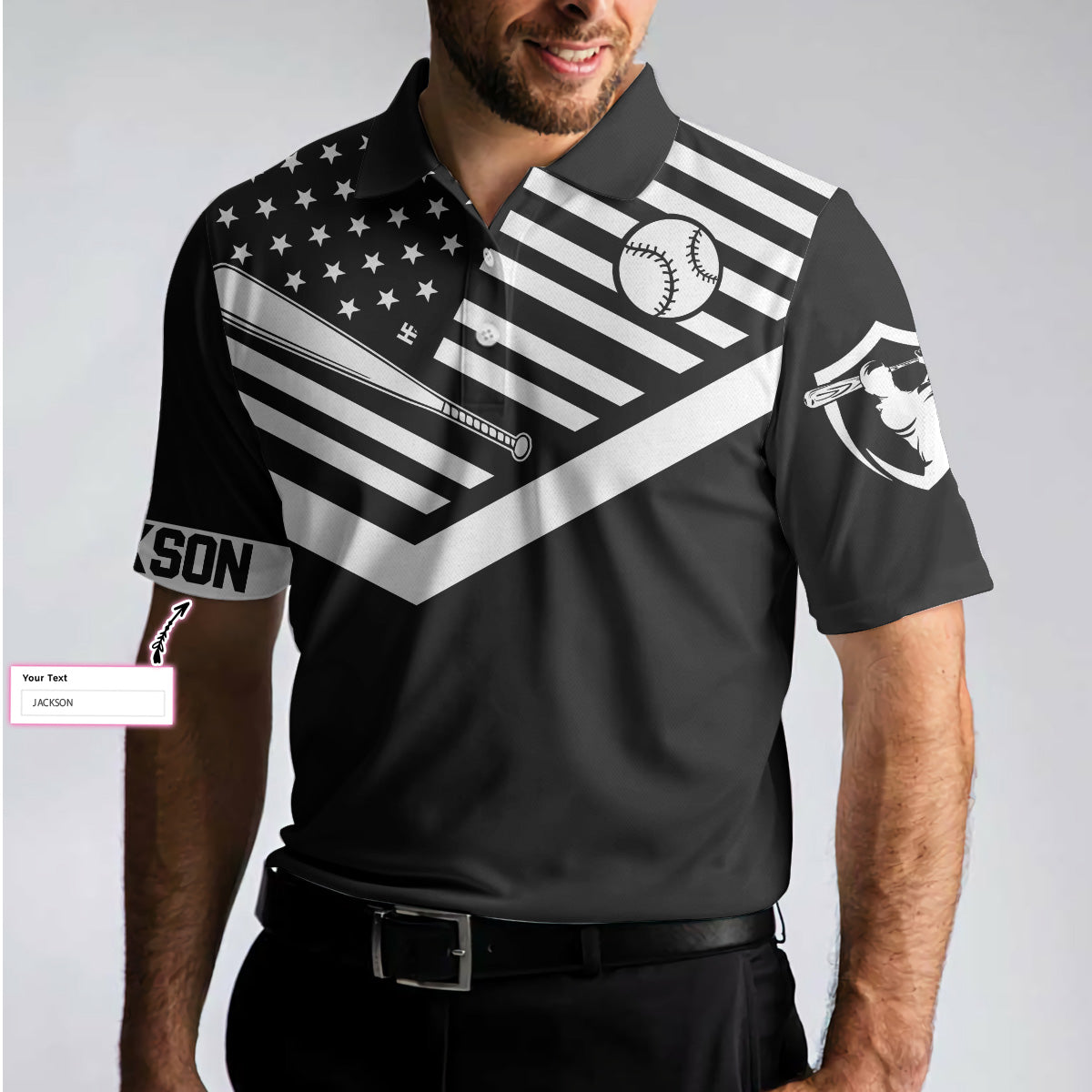 My Drinking Team Has A Baseball Problem Custom Polo Shirt, Personalized Black American Flag Baseball Shirt For Men