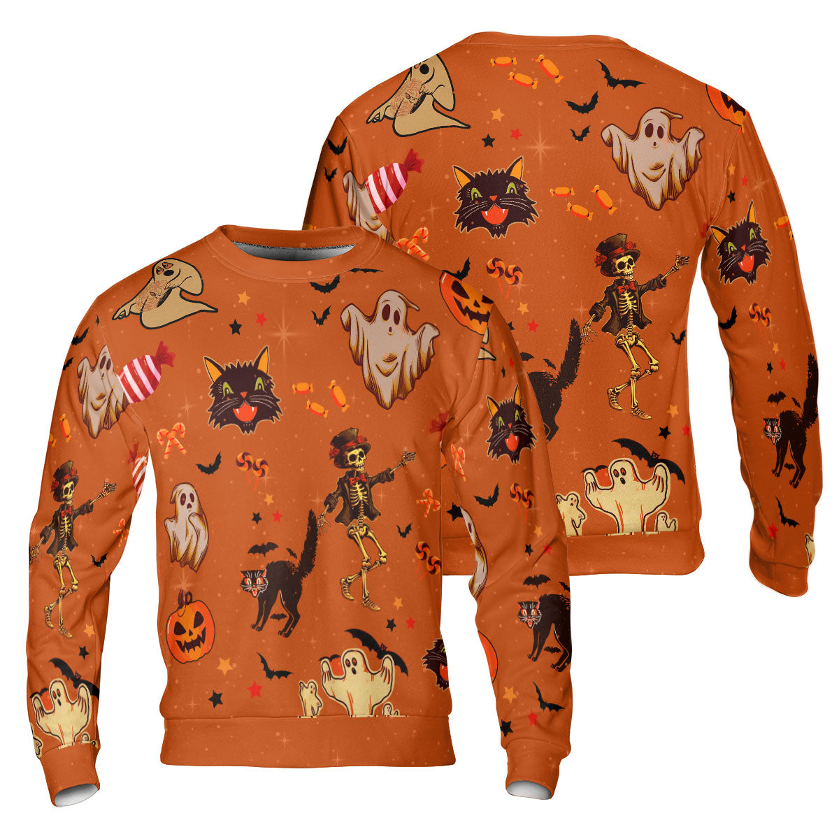 Orange Halloween Ghost Pumpkins Candle Skeleton Silhouette Sweatshirt - HYPERFAVOR