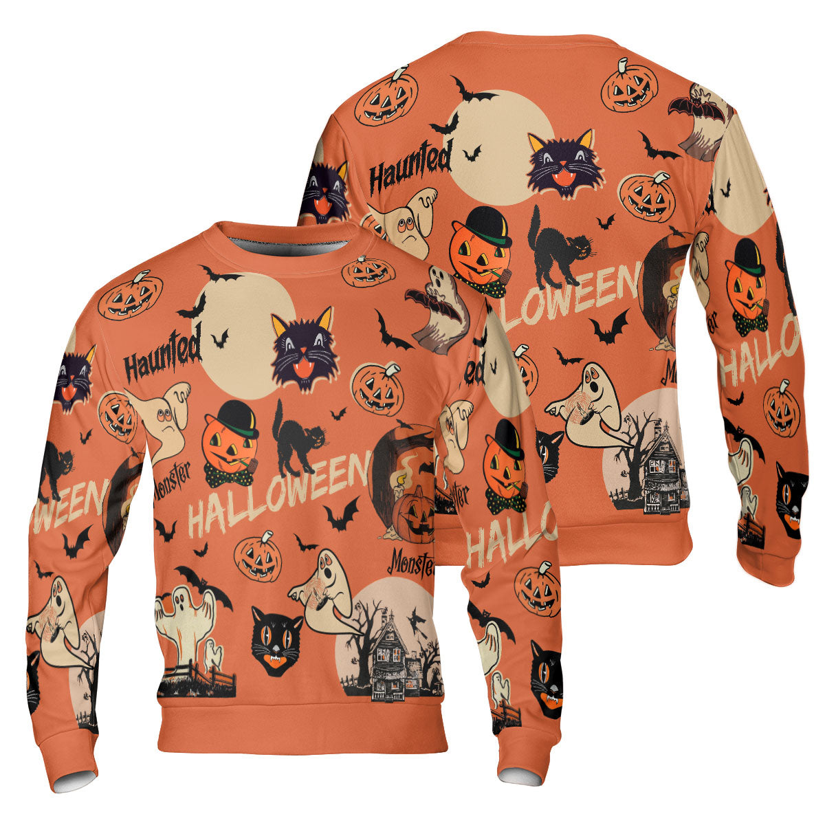 Orange Retro Halloween Ghost Pumpkins Sweatshirt - HYPERFAVOR