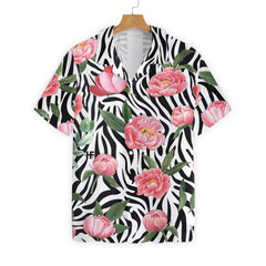 Peony Zebra Watercolor Painting Art Hawaiian Shirt