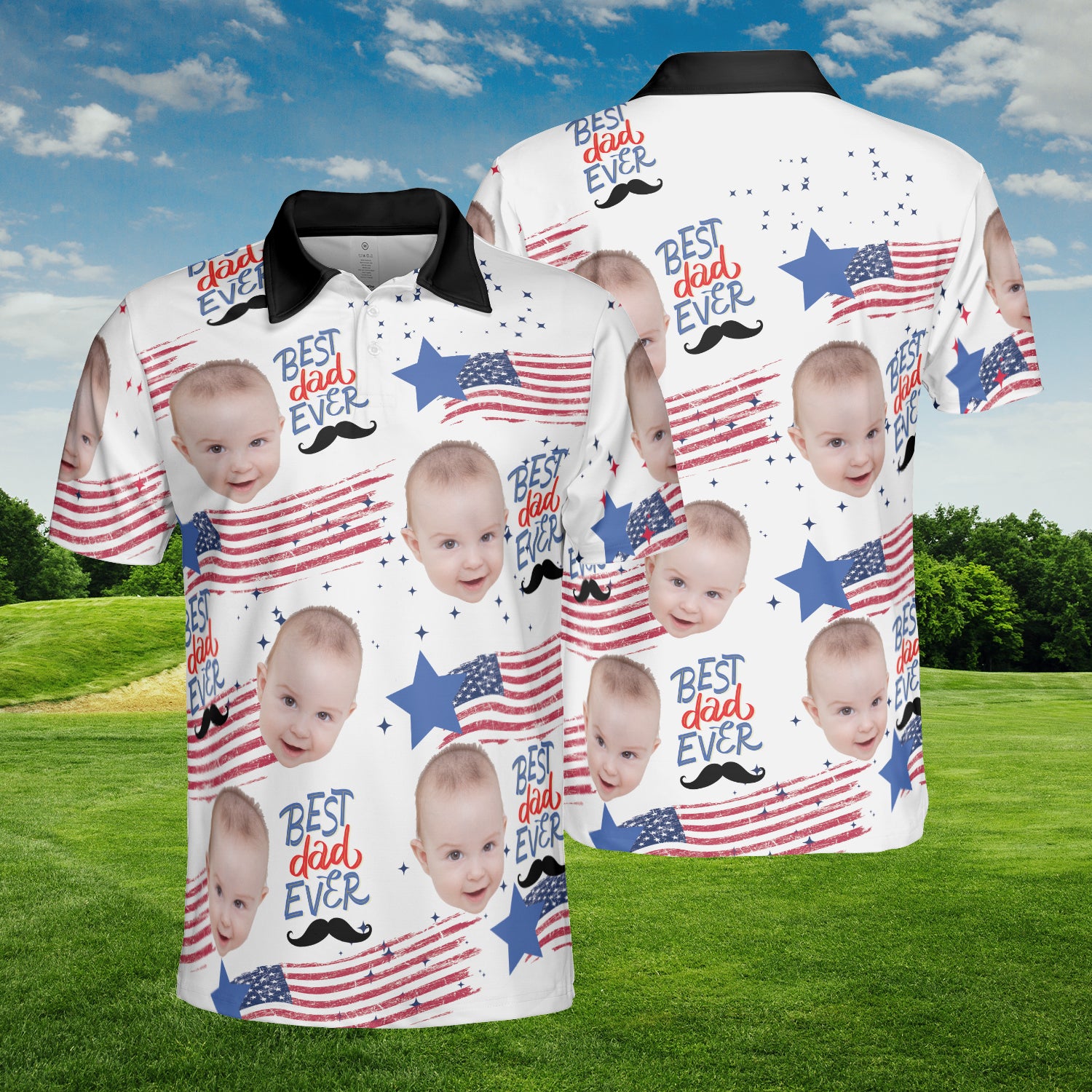 HYPERFAVOR Personalized Best Dad Ever USA Flag Polo Shirts