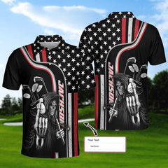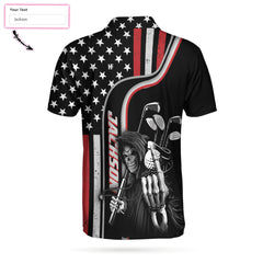 Personalized Reaper American Flag Custom Polo Shirt, Cool Golf Shirt For Men, Gift For Golfers