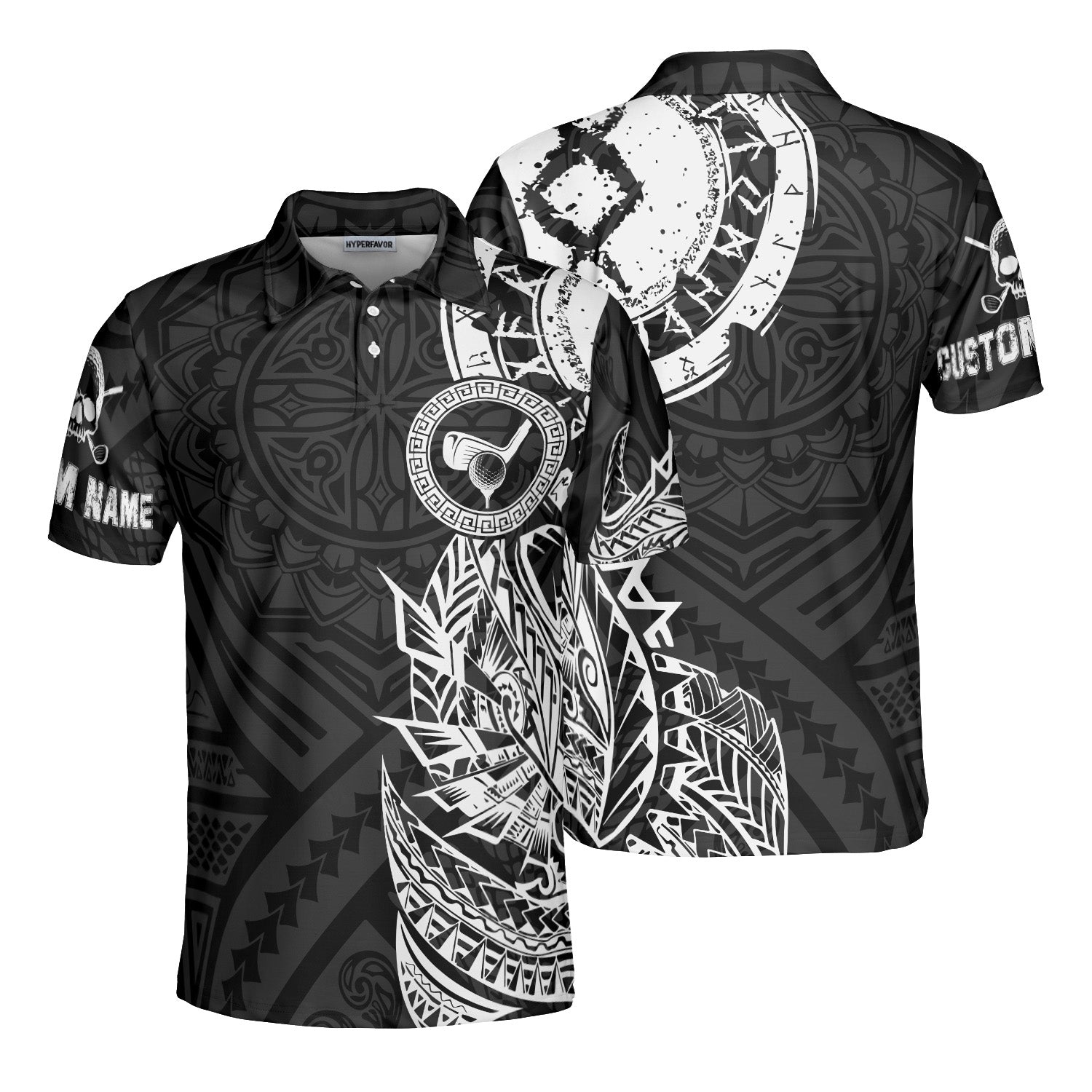 HYPERFAVOR Personalized Tribal Tattoo Black Version Golf Polo Shirt For Men