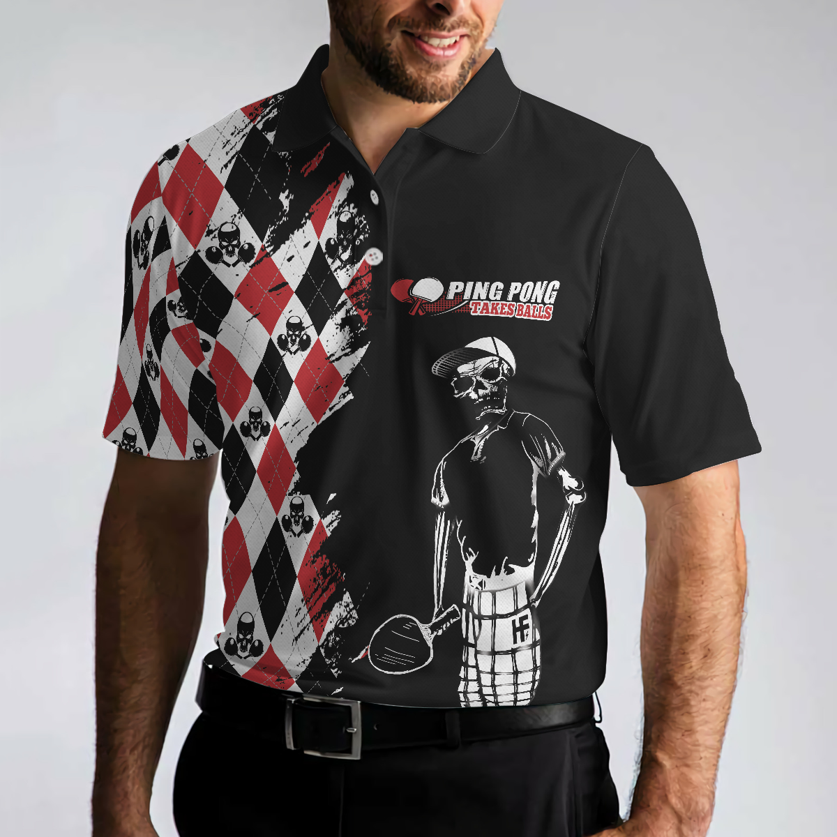 Ping Pong Takes Balls Table Tennis Polo Shirt, Argyle Pattern Ping Pong Player Polo Shirt, Ping Pong Shirt For Men - Hyperfavor