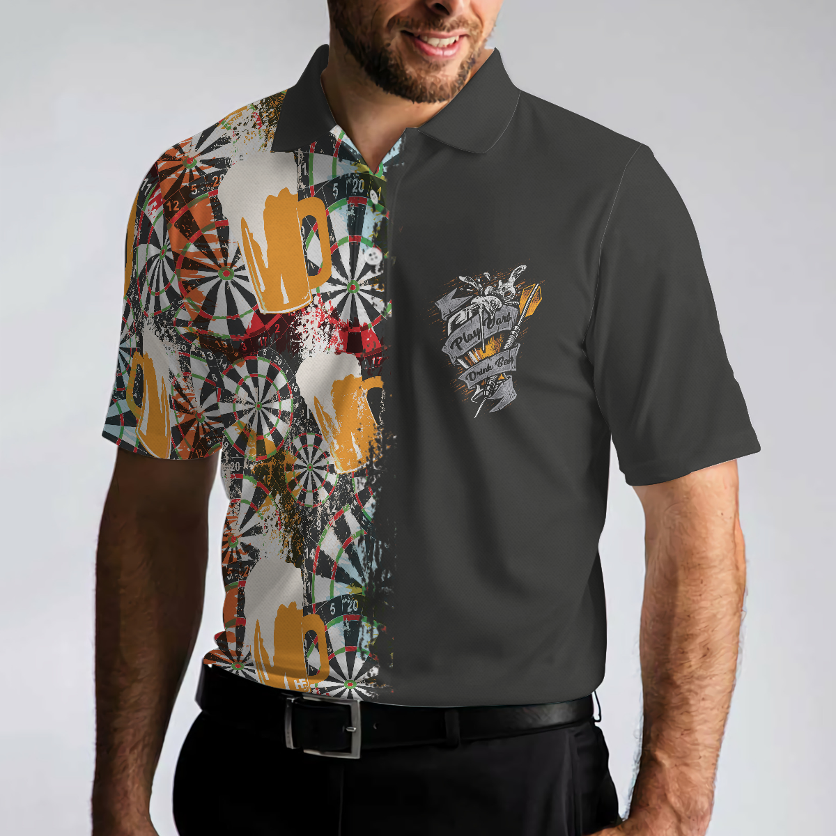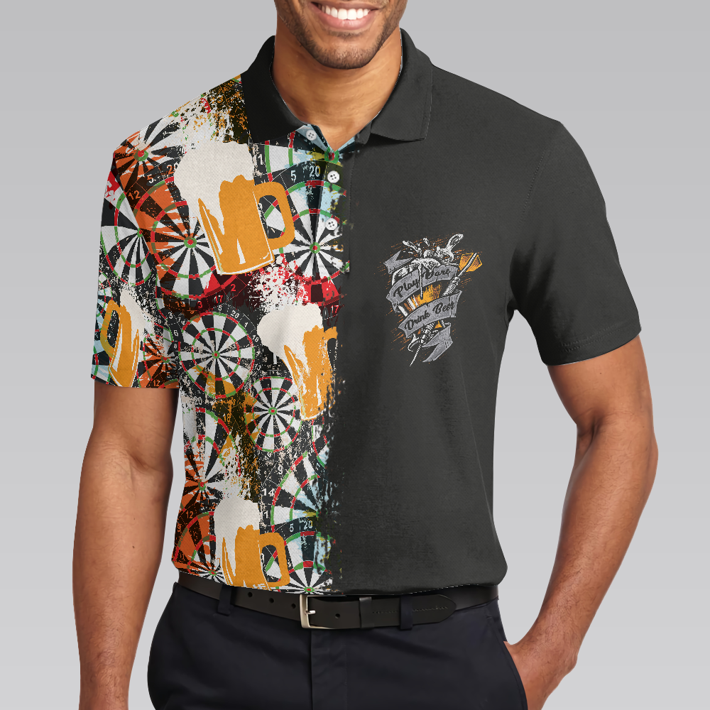 Play Darts And Drink Beer Polo Shirt, Colorful Dart Board Polo Shirt, Dart Shirt For Beer Lovers - Hyperfavor