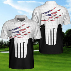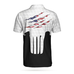 Ripped Skull American Flag Short Sleeve Polo Shirt, Golf Pattern Polo Shirt, Best Golf Shirt For Men