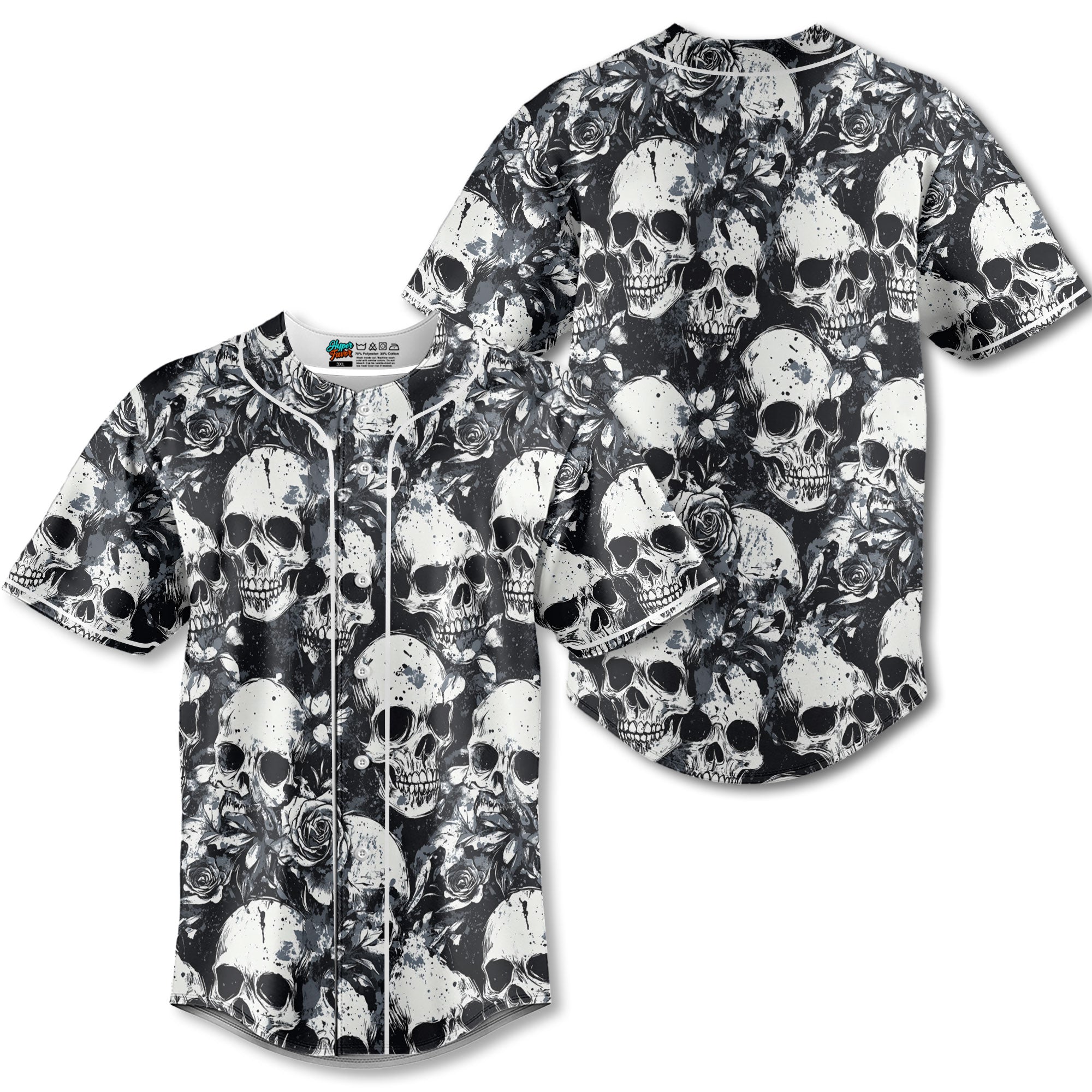 Rose Flower Skull Black & White Pattern Baseball Jersey - HYPERFAVOR