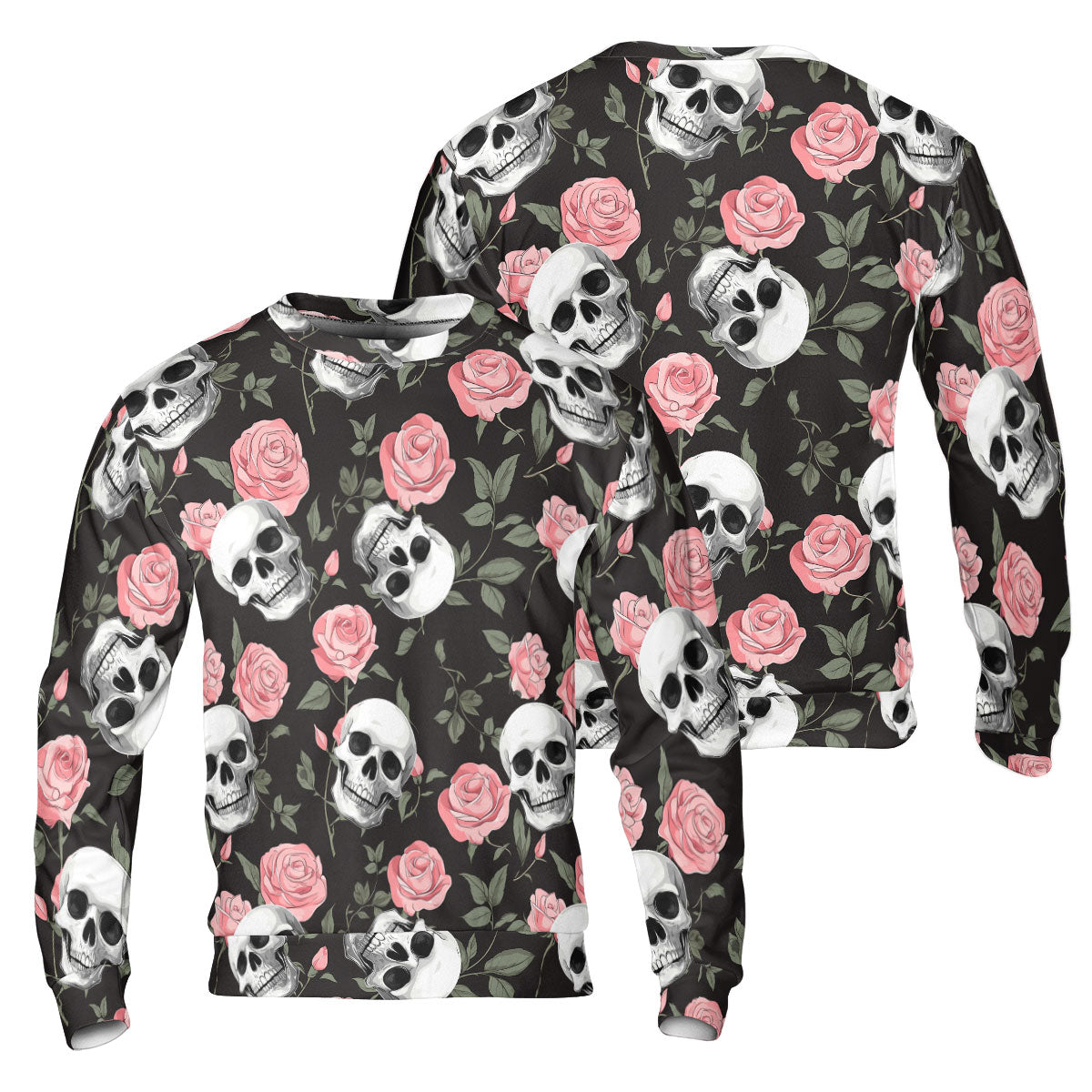 Rose Flower Skull Pattern Sweatshirt - HYPERFAVOR