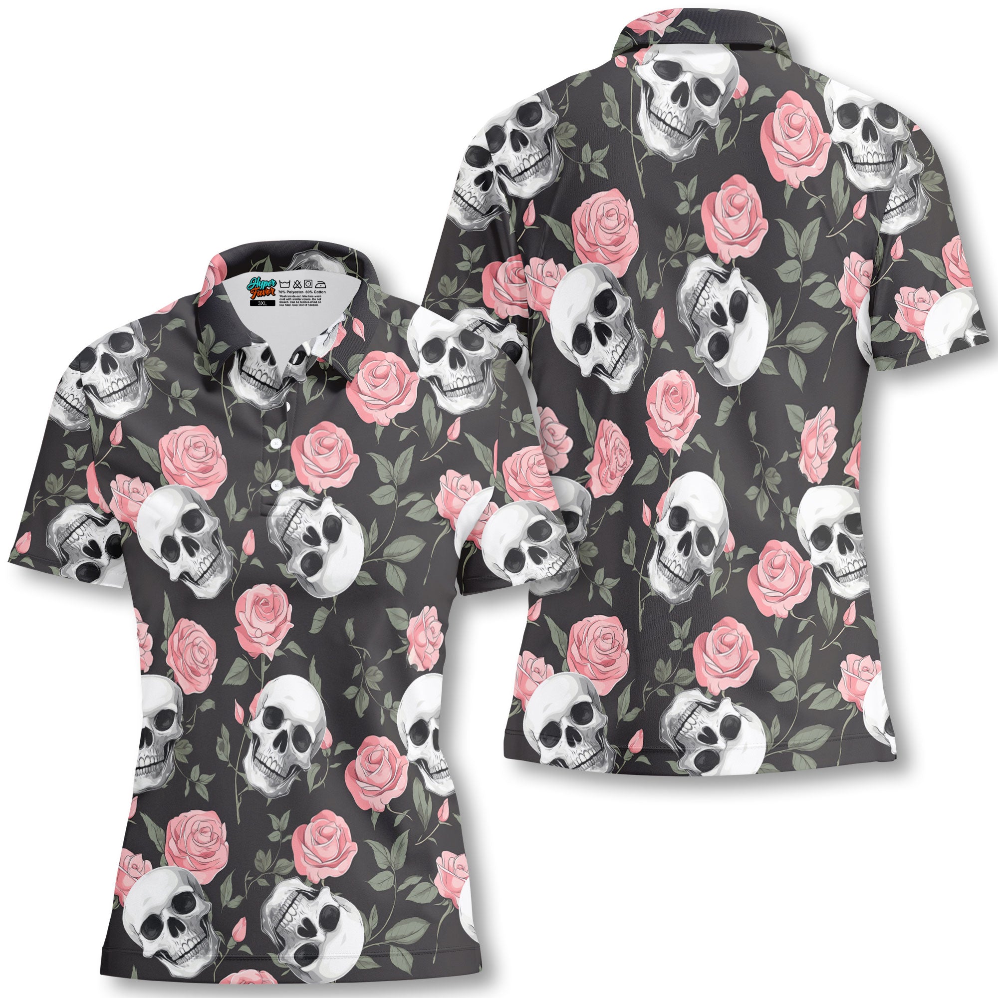 Rose Flower Skull Pattern Women Polo Shirt - HYPERFAVOR