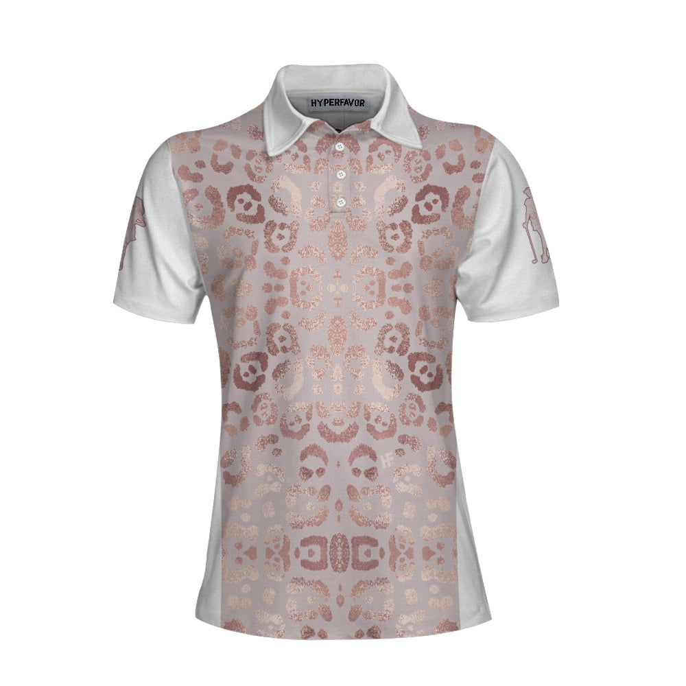 Rose Gold Leopard Print Short Sleeve Women Polo Shirt - Hyperfavor