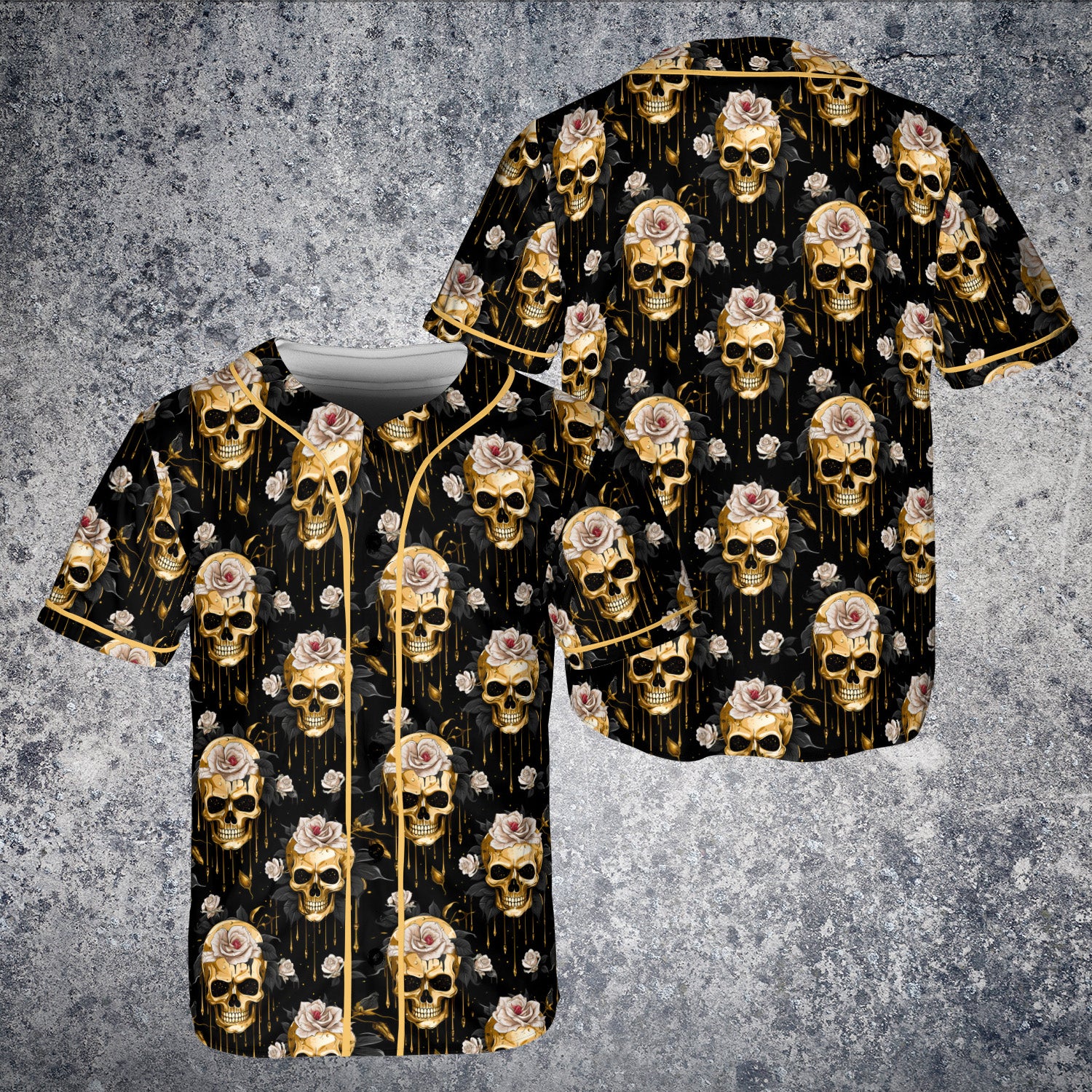 HYPERFAVOR Rose And Gold Skull Pattern Baseball Jersey