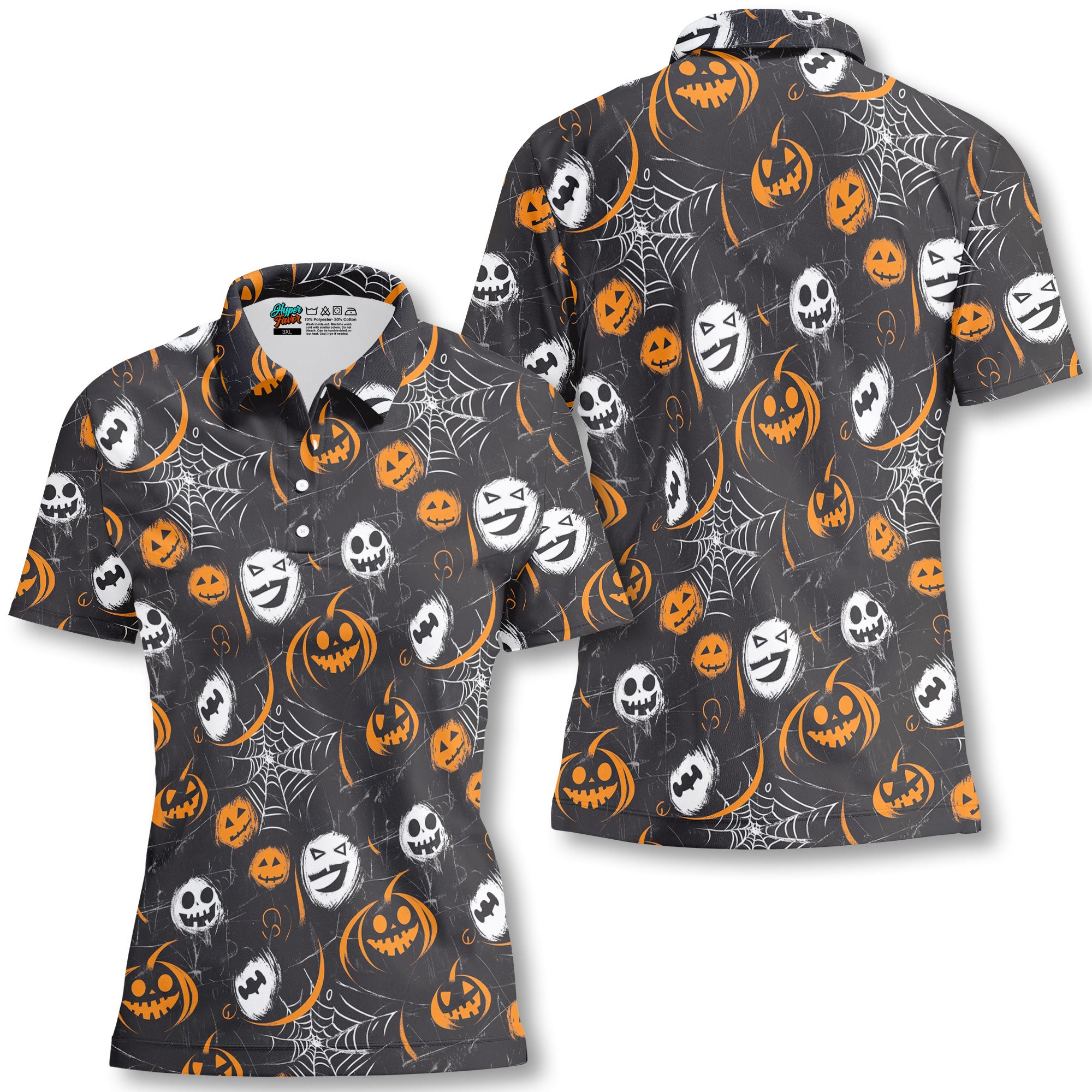 Scary Faces On Dark Halloween Seamless Pattern Women Polo Shirt - HYPERFAVOR