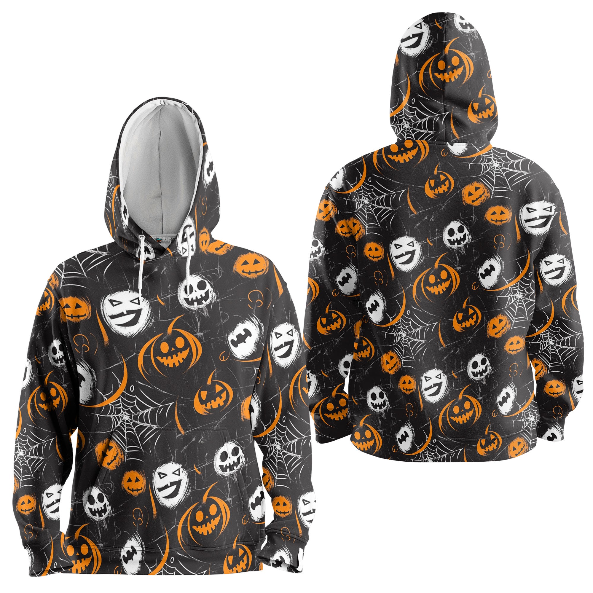 Scary Faces On Dark Halloween Seamless Pattern Hoodie - HYPERFAVOR
