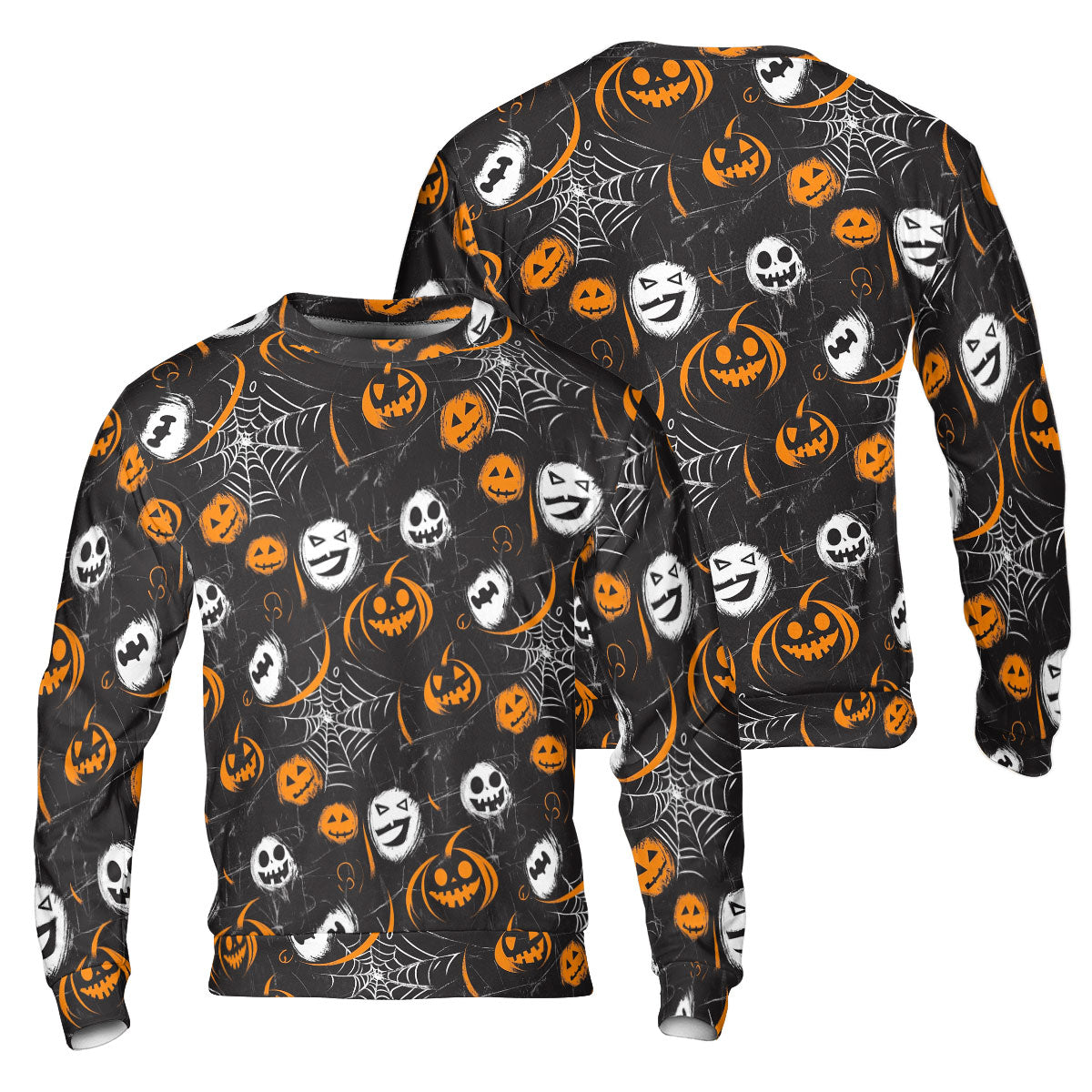 Scary Faces On Dark Halloween Seamless Pattern Sweatshirt - HYPERFAVOR