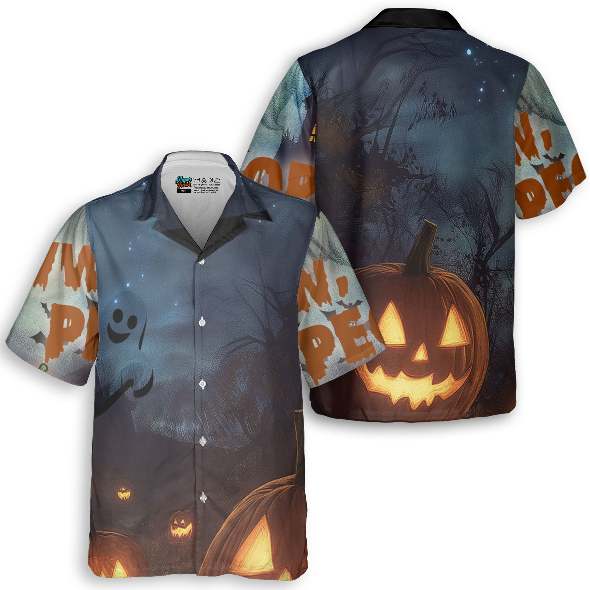 Scary Ghost Pumpkins In Midnight Halloween Hawaiian Shirt - HYPERFAVOR