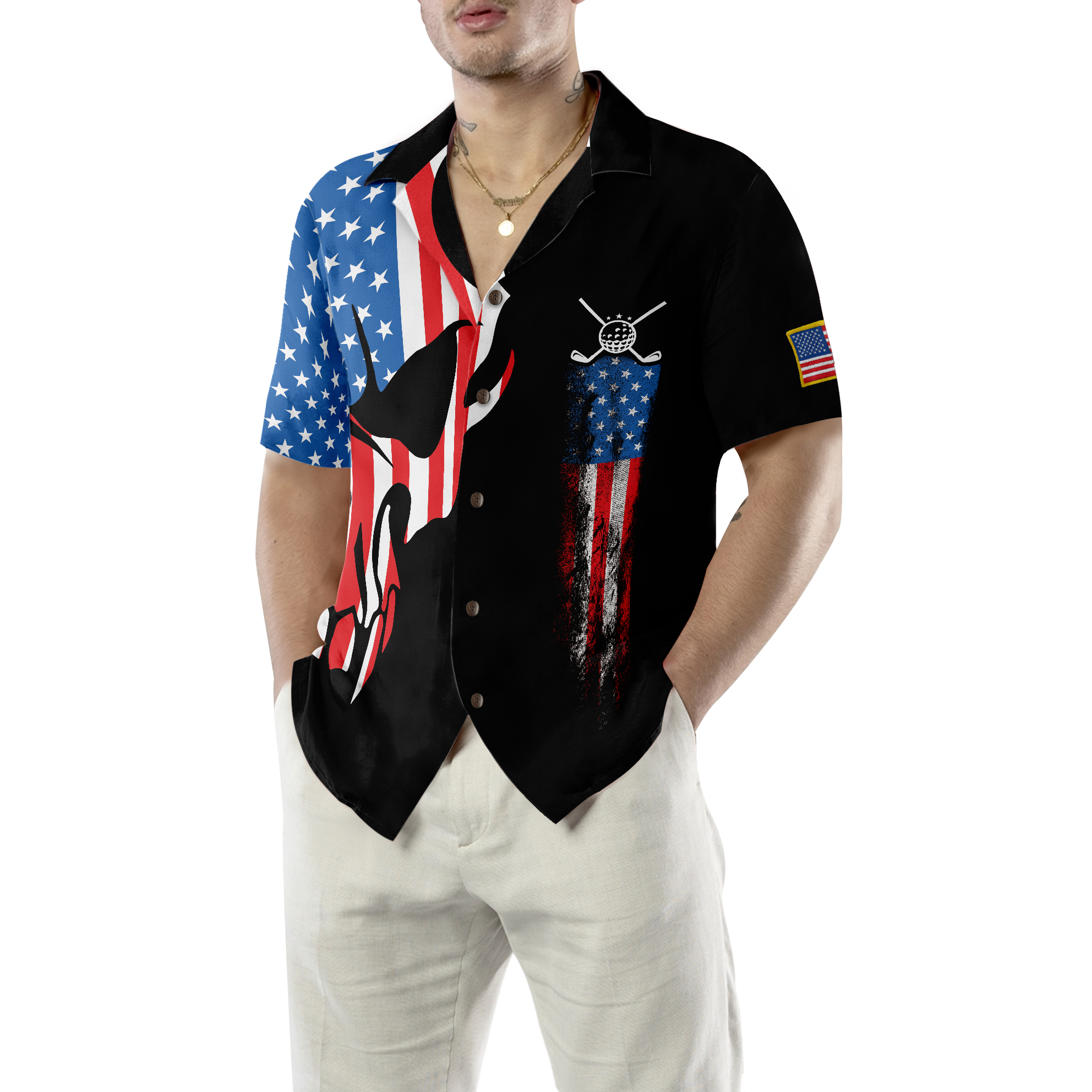 Skull Golf With American Flag Hawaiian Shirt - Hyperfavor