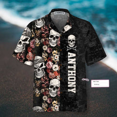Skull Heads Vintage Floral Pattern Custom Hawaiian Shirt, Tropical Flowers Skull Shirt
