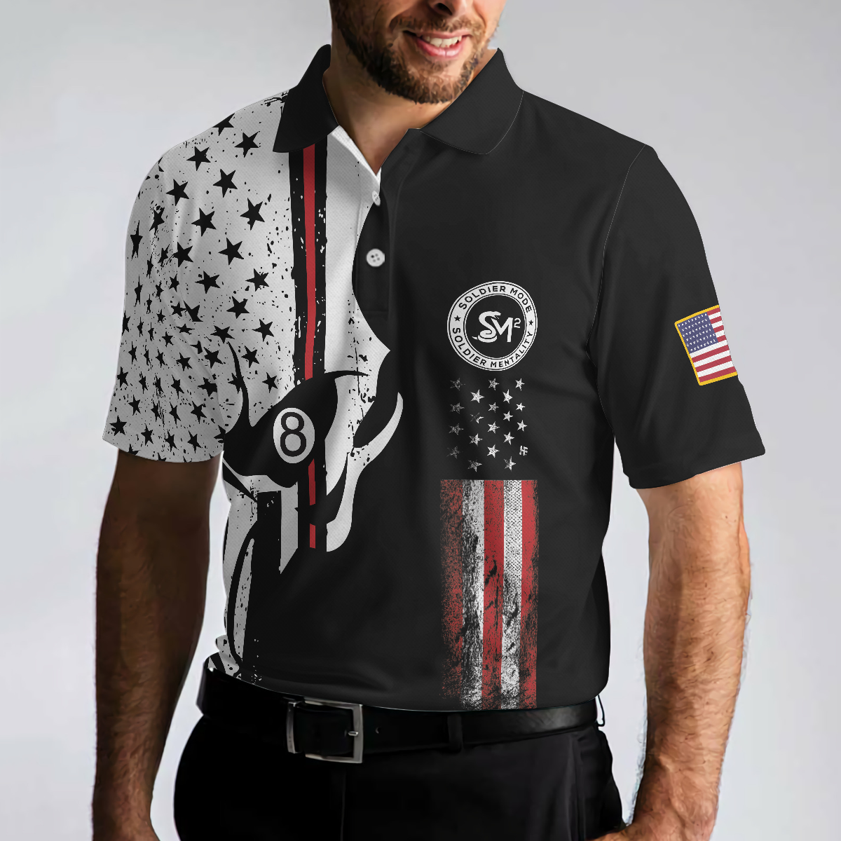 SM2 Skull Black And White American Flag Polo Shirt - Hyperfavor