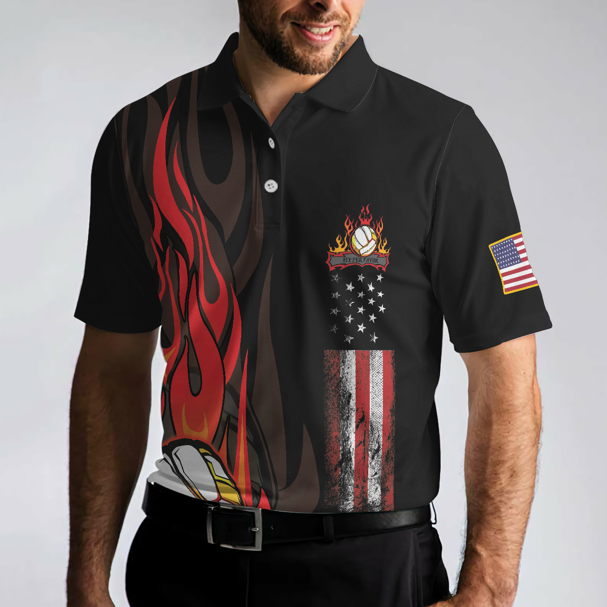 Volleyball Flame Short Sleeve Polo Shirt, Black American Flag Polo Shirt, Best Volleyball Shirt For Men
